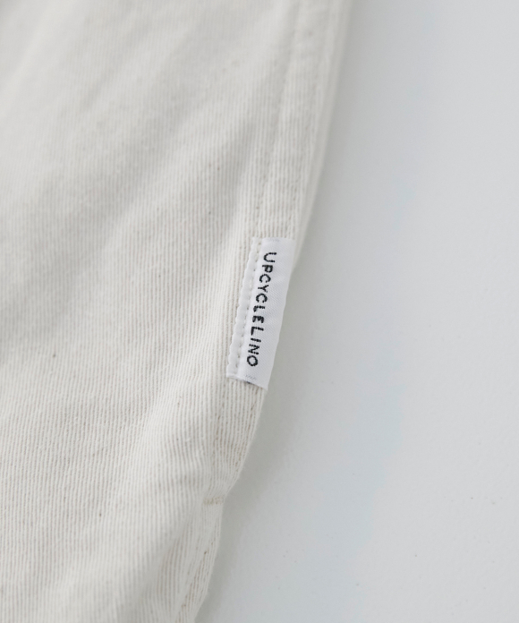 With our dedication to sustainable circular fashion and commitment to reducing the waste in our manufacturing process, we have developed an original upcycled yarn made of our linen fabric waste from our garment production. The upcycled fiber is made out of our pure linen fabric scraps with added organic virgin cotton fiber to become our original upcycled linen-cotton yarn named UpcycleLino.