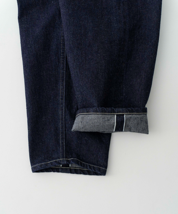 These pants are made from a crisp selvedge denim fabric. The selvedge edge of the fabric is used on both sides.