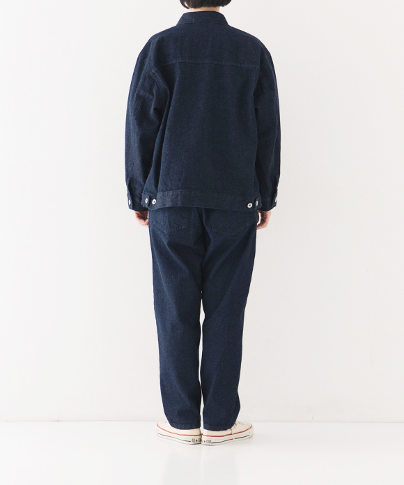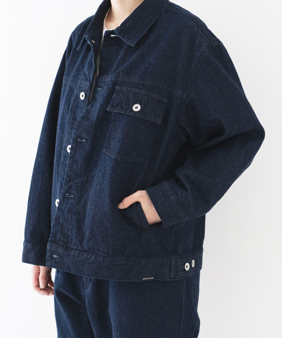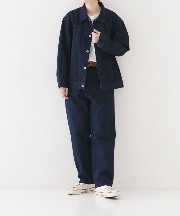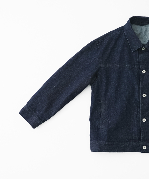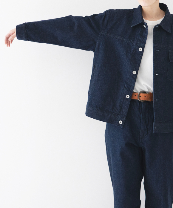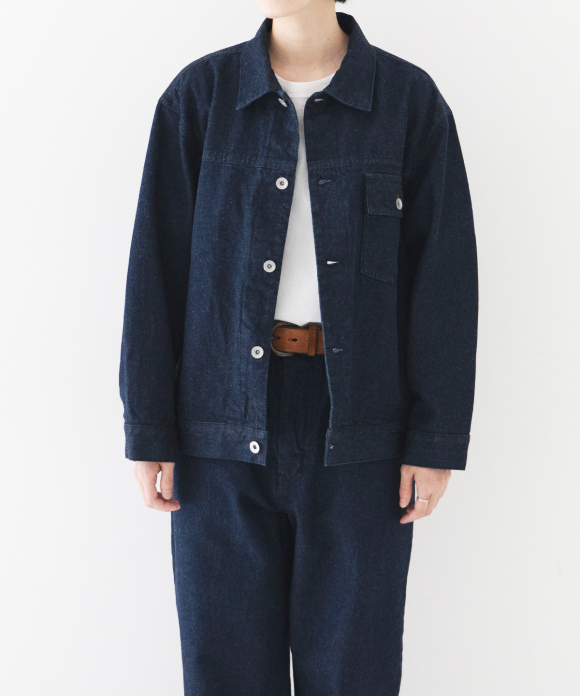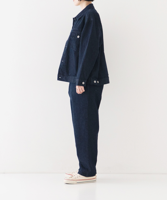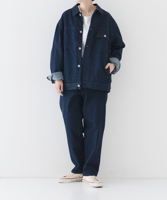 A wide body jacket in our original eco-friendly 9.5 oz. UpcycleLino cotton linen denim fabric.