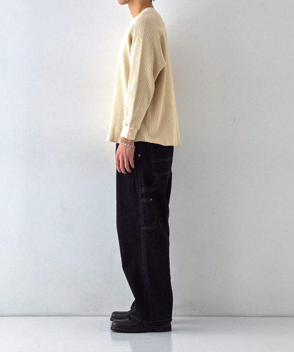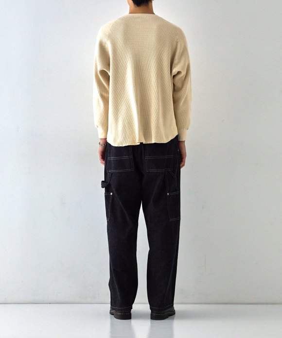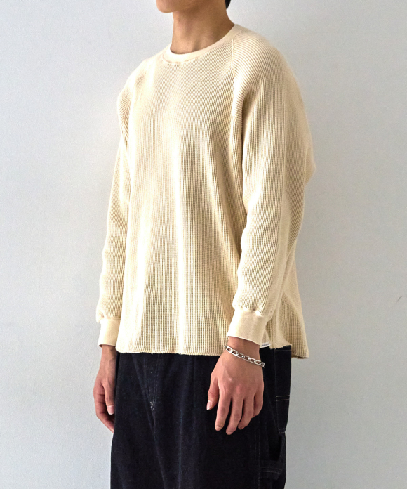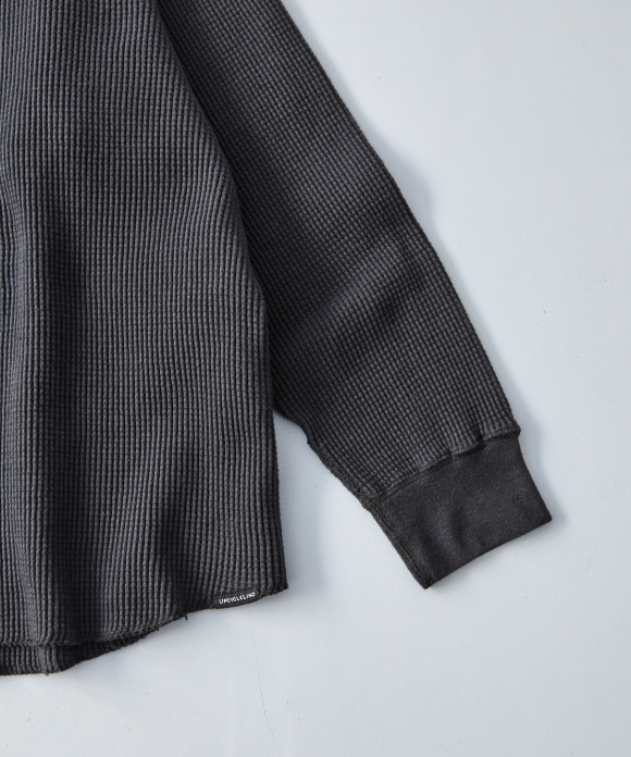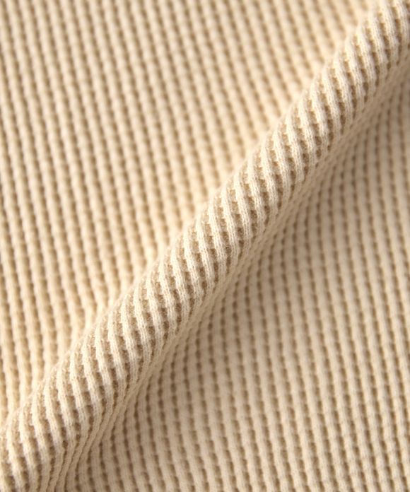 We also took more time and effort than usual to prevent the threads from breaking, resulting in a tightly woven fabric with just the right thickness and weight, despite being a waffle fabric.