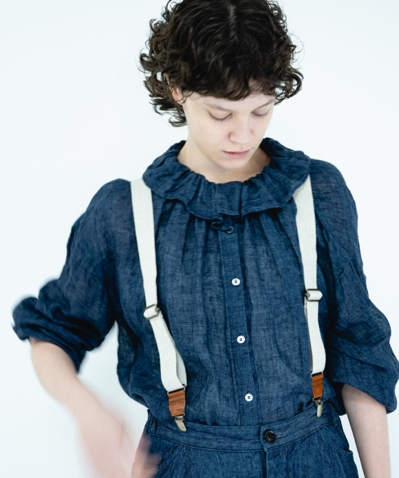 (Upcyclelino)Cotton Linen Frill Top
