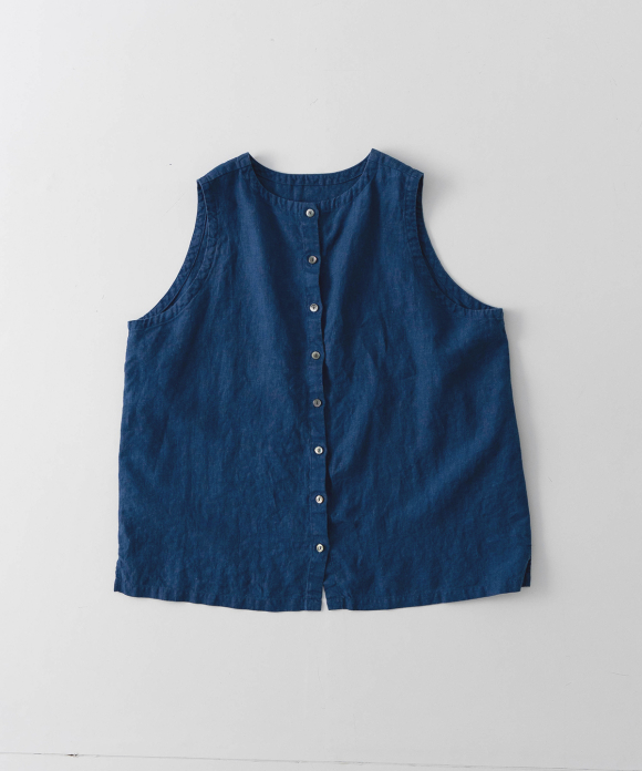 Indigo Dyed Linen Two-Way Vest