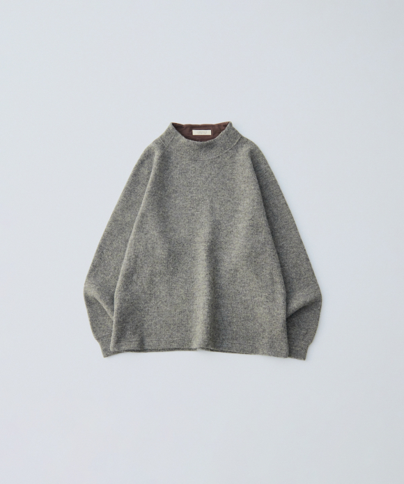 Wool Cotton Quarter-face Knit Mock Neck Pullover Tops