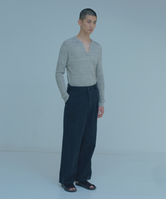 [ UpcycleLino ] Cotton Linen Inlay Knitweave Stand Collar Pullover