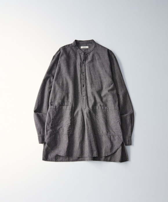 Mélange Stripe Band Collar Pullover Shirt
