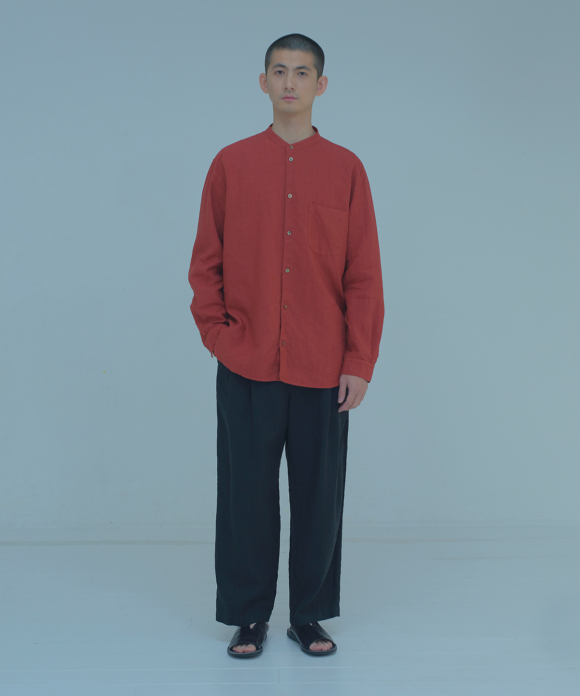High Count Linen Band Coller Shirt