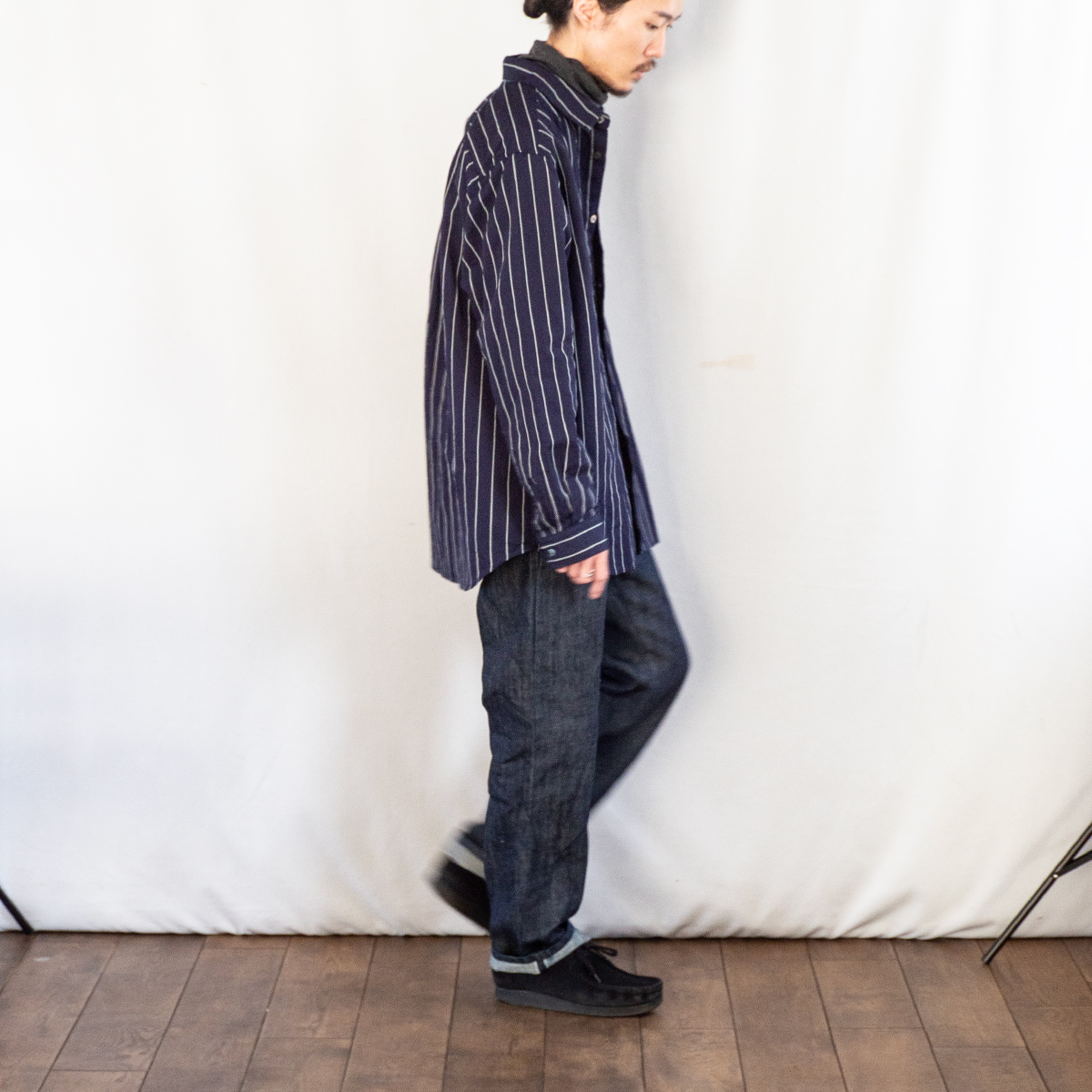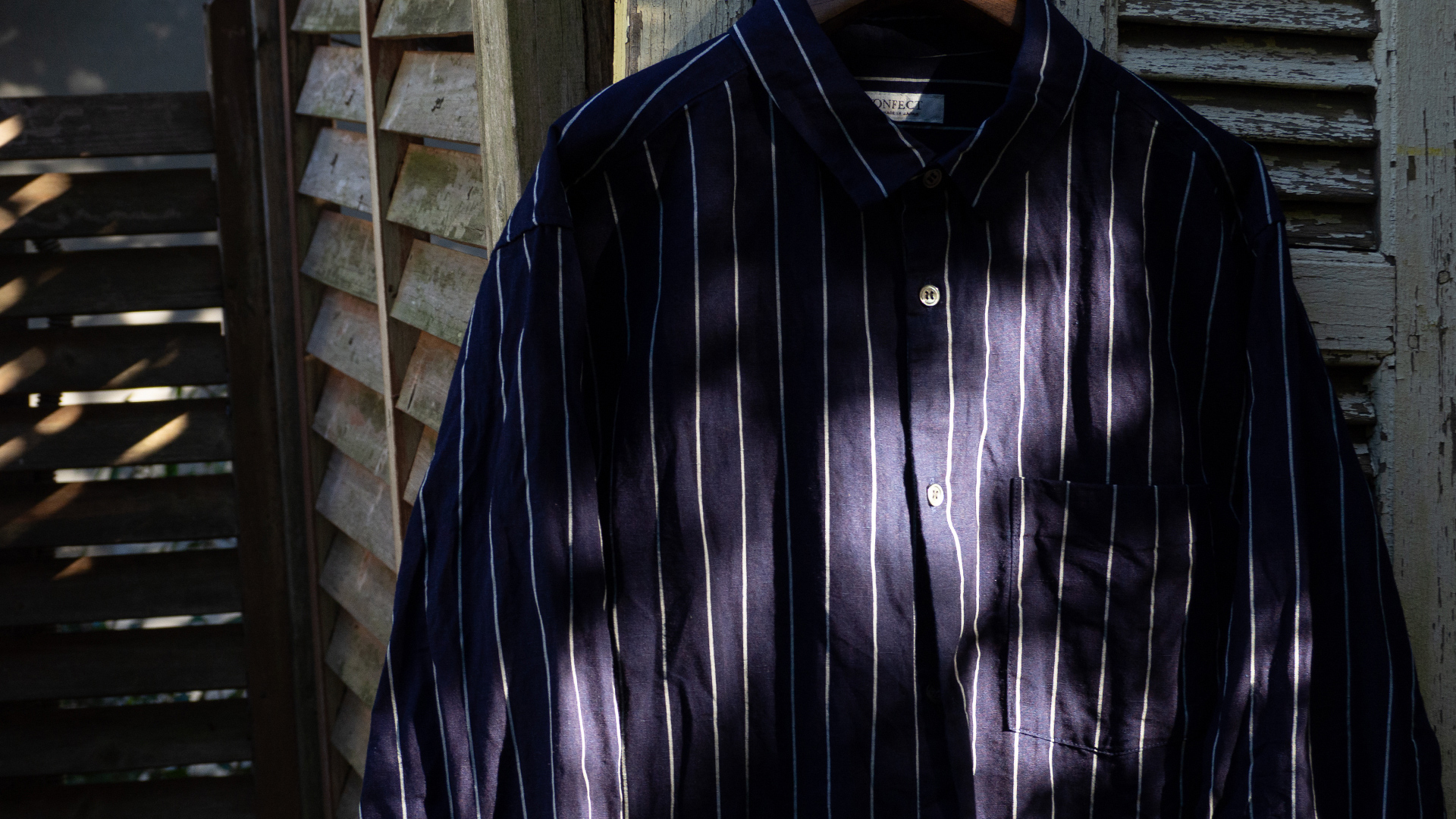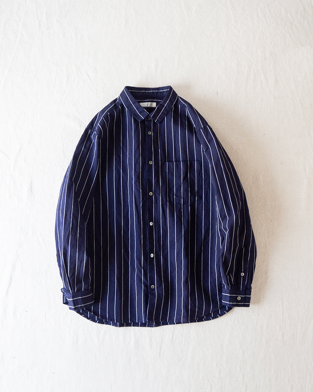 Cotton Linen Indigo Stripe Weather Cloth Shirt