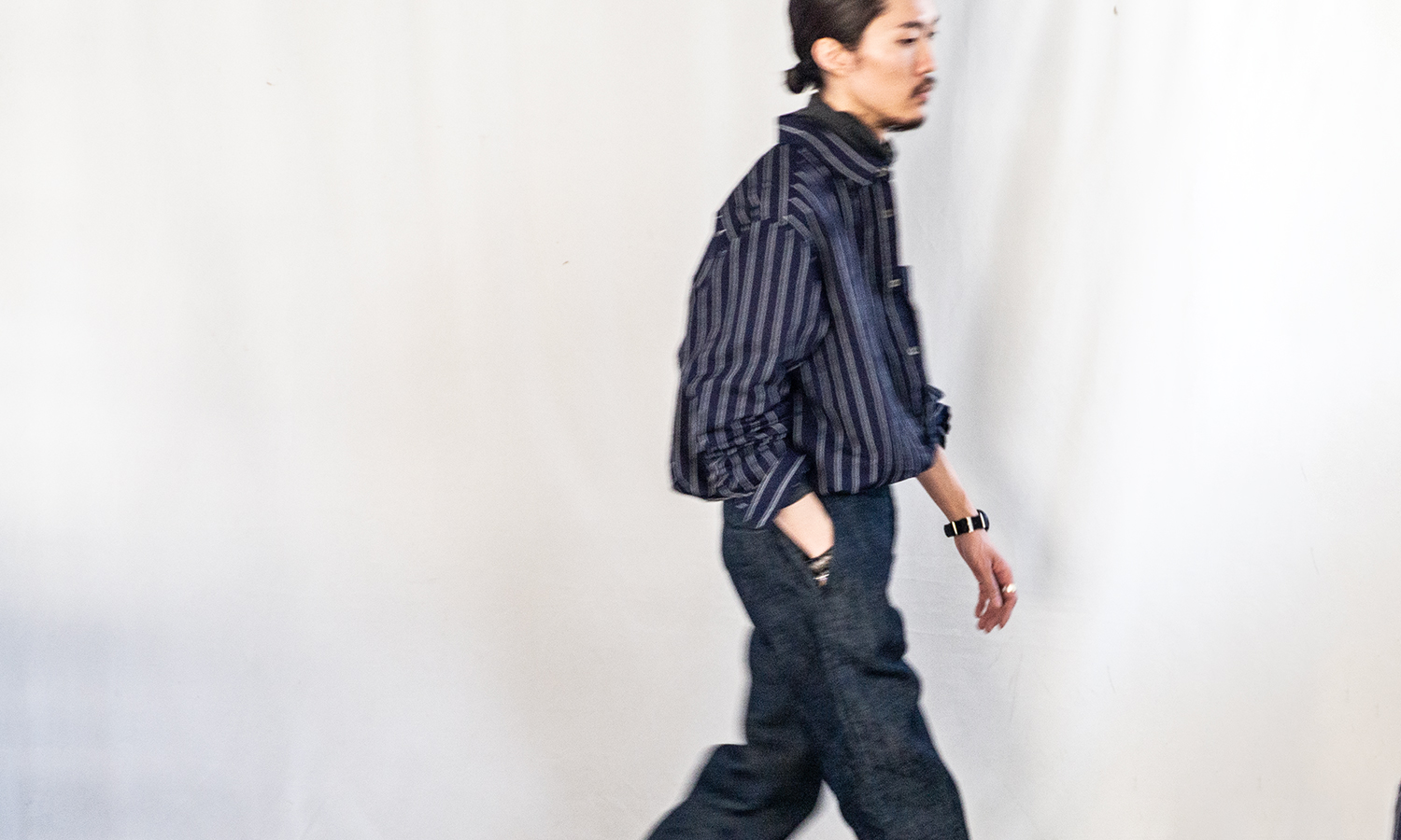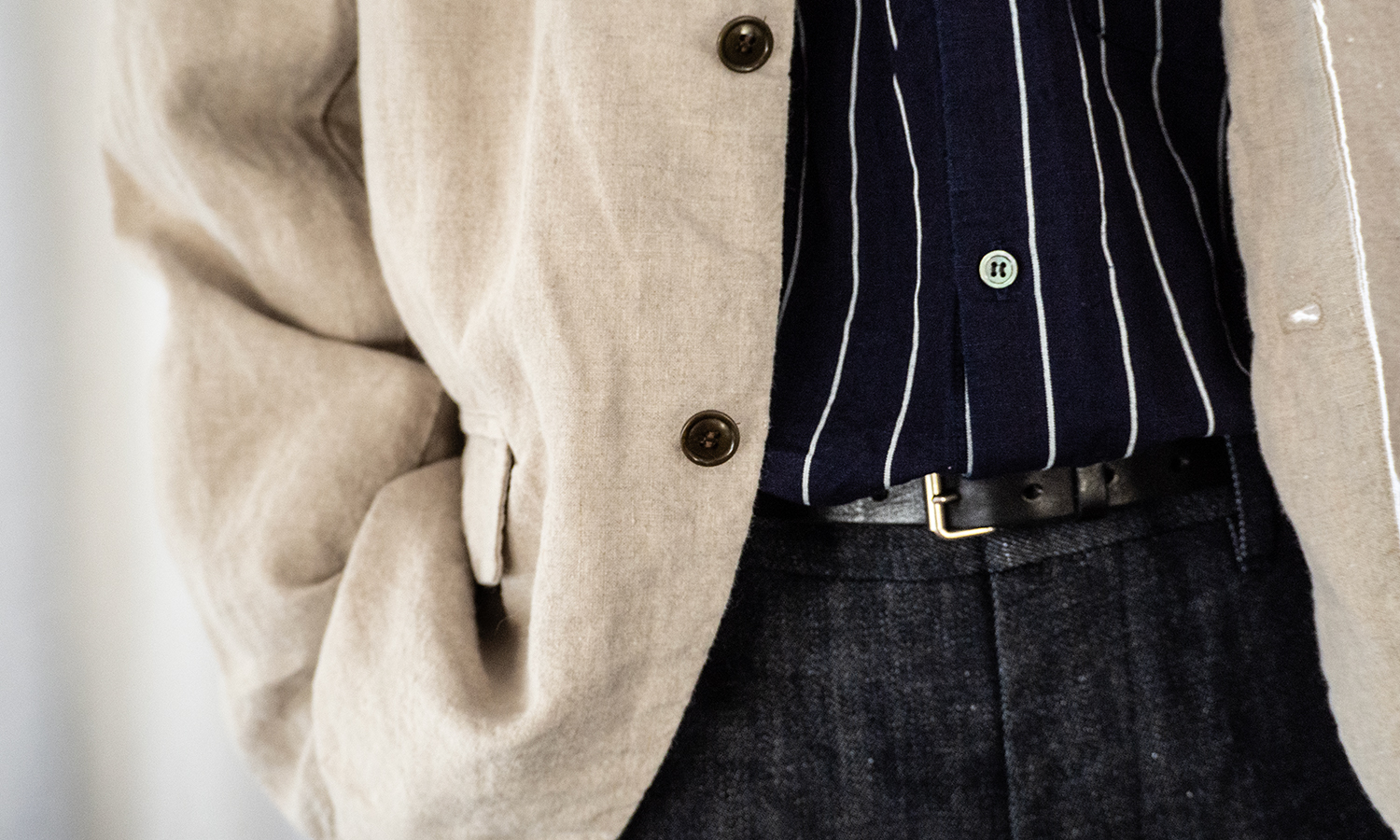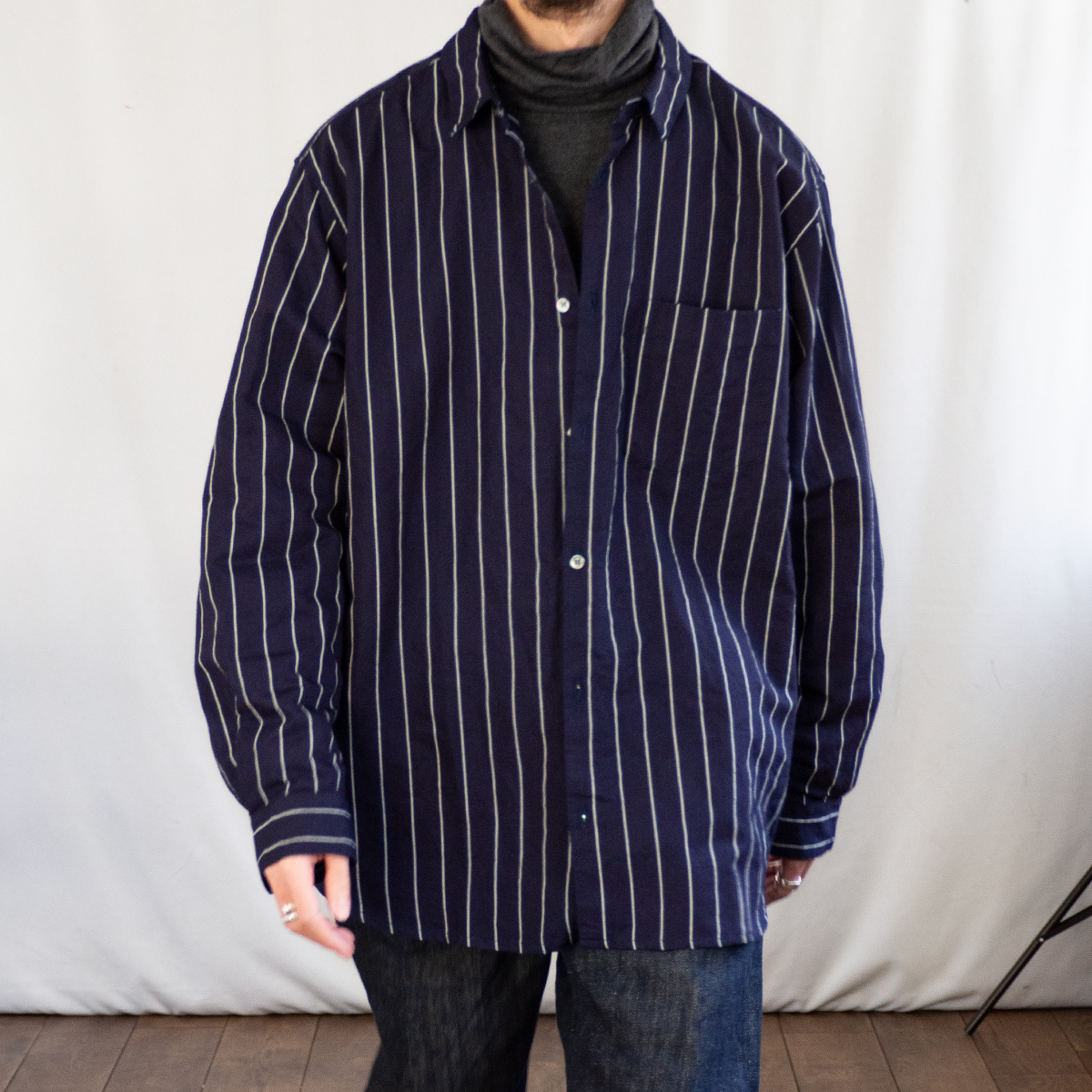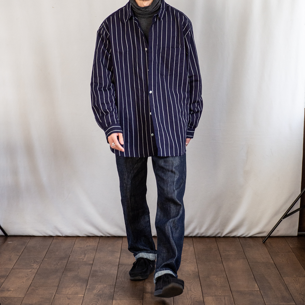 Cotton Linen Indigo Stripe Weather Cloth Shirt